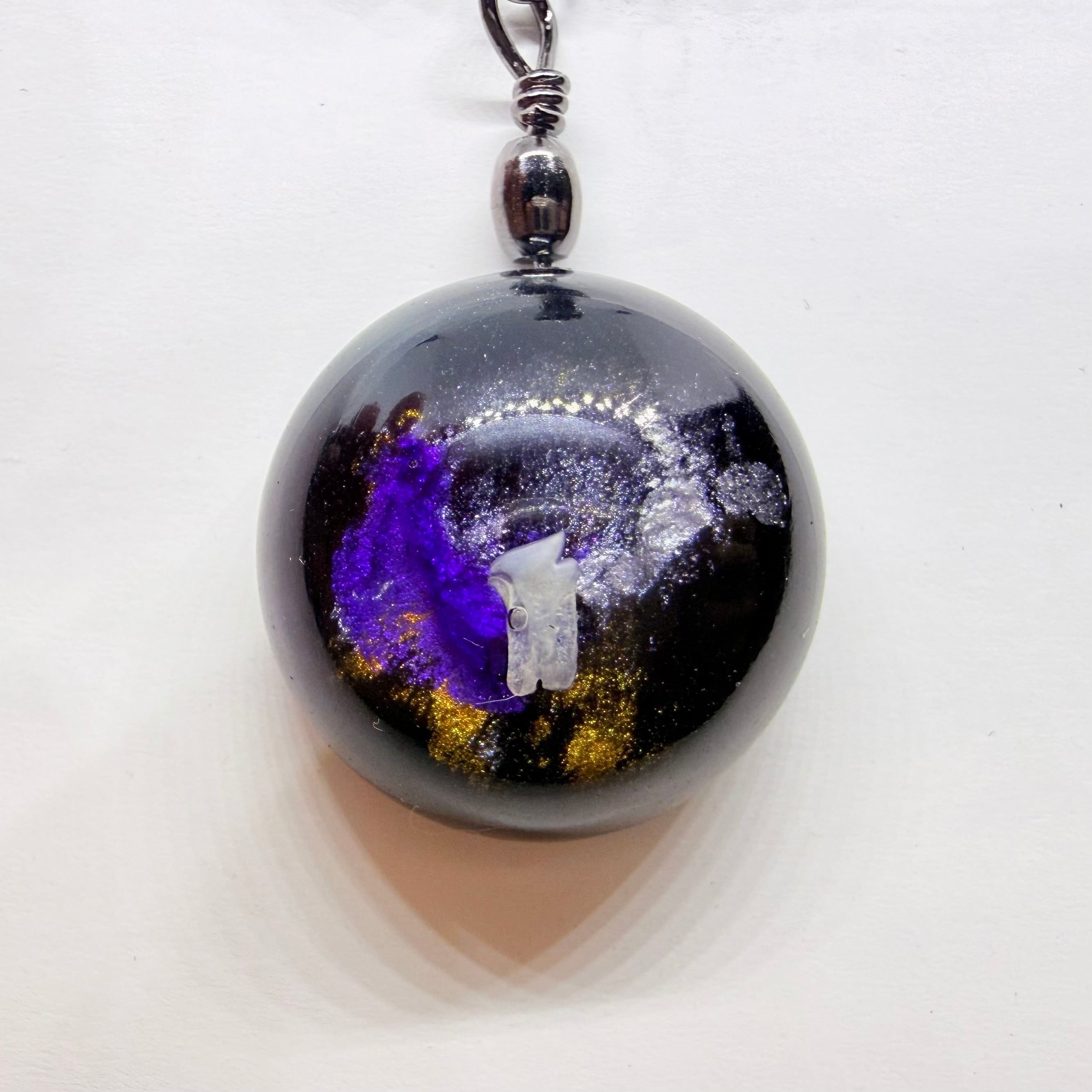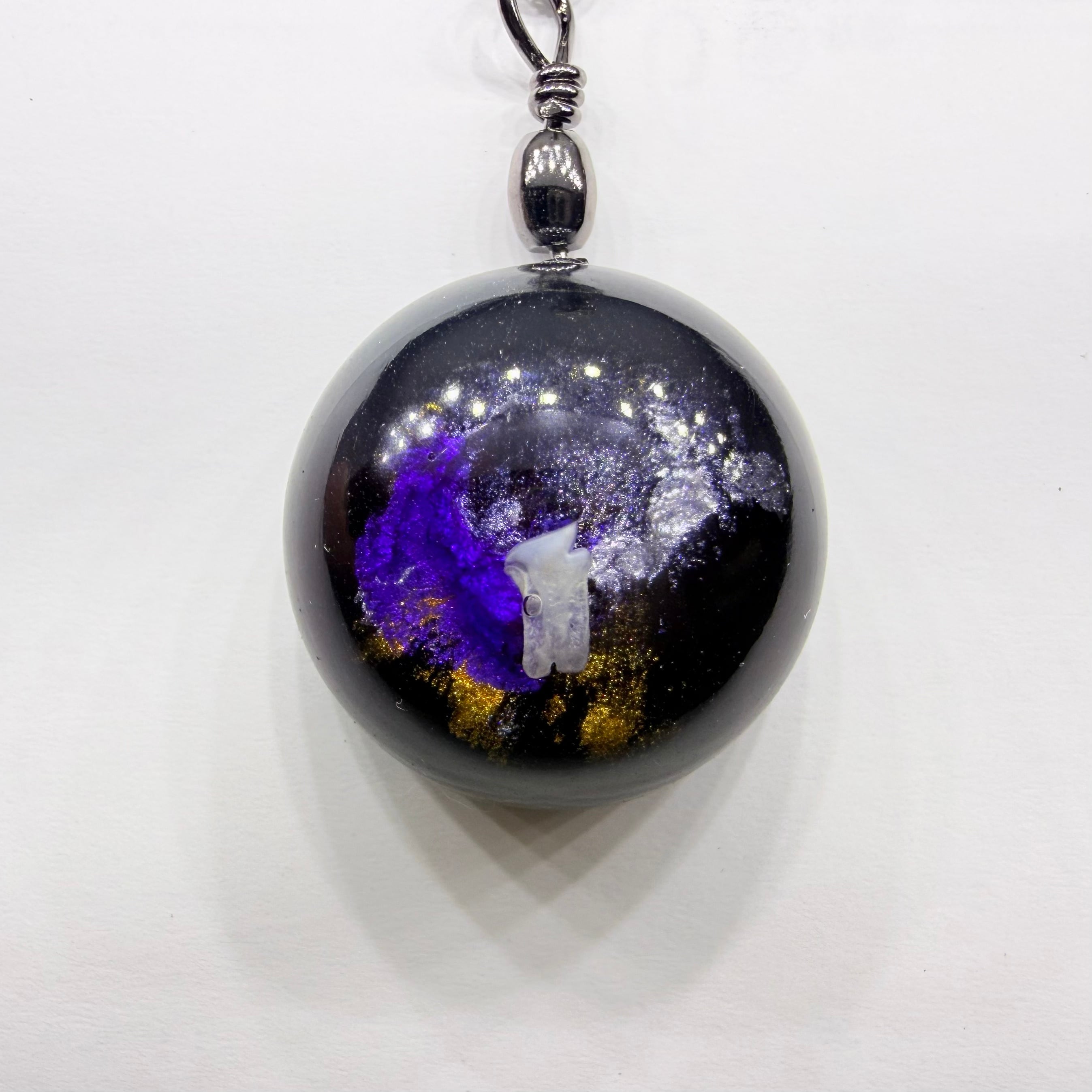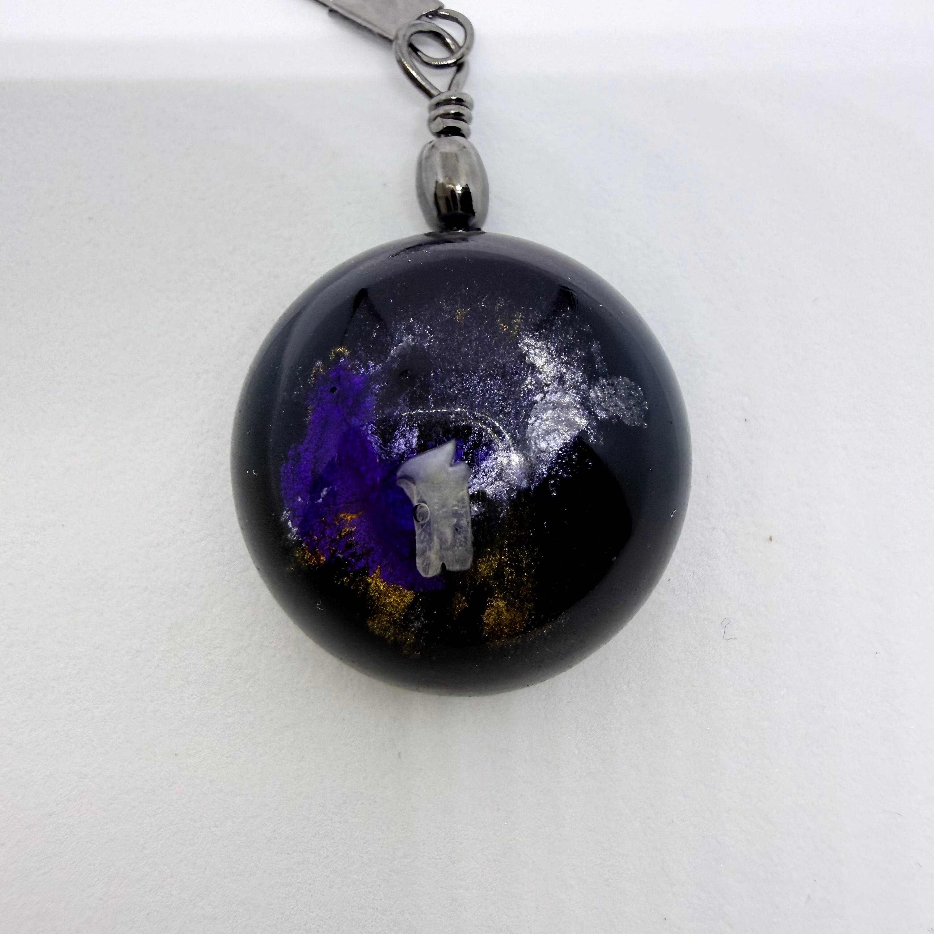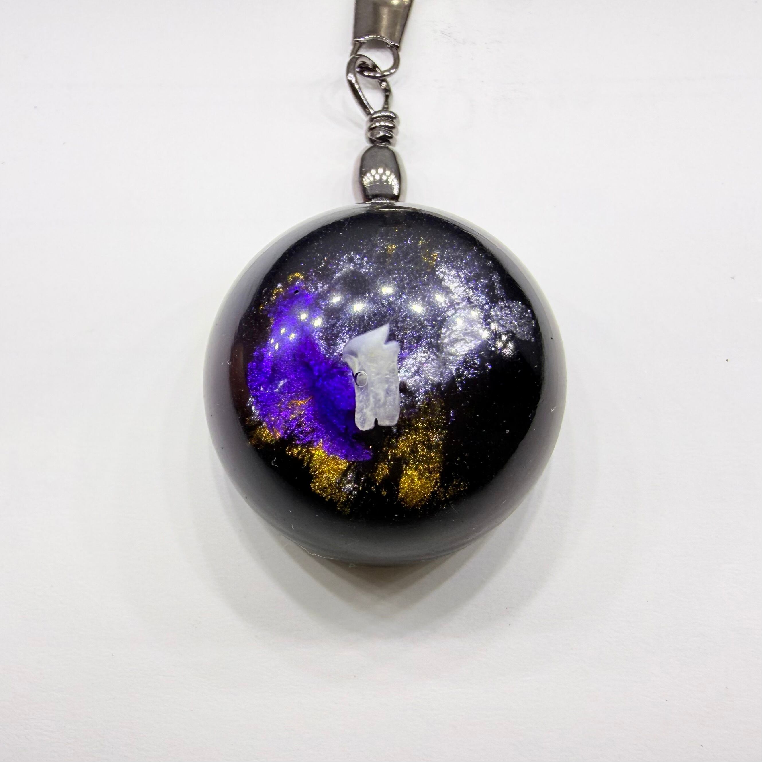 レジンの中に深海ザメの歯を埋め込んだストラップになります。