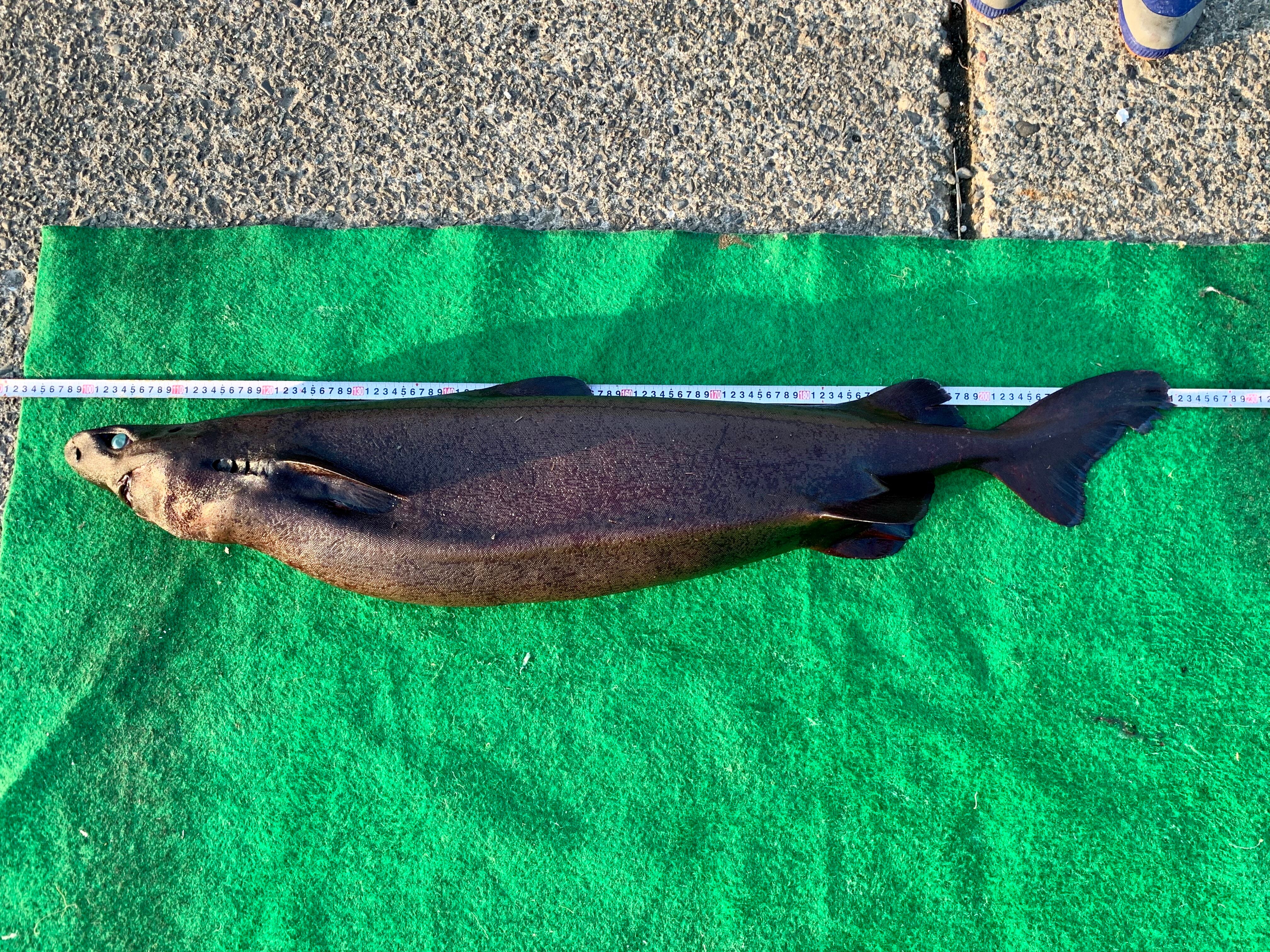 サメは自分たちで釣り上げたサメを使用し、金具部分には釣具の一つ【スナップサルカン】を使用しています。