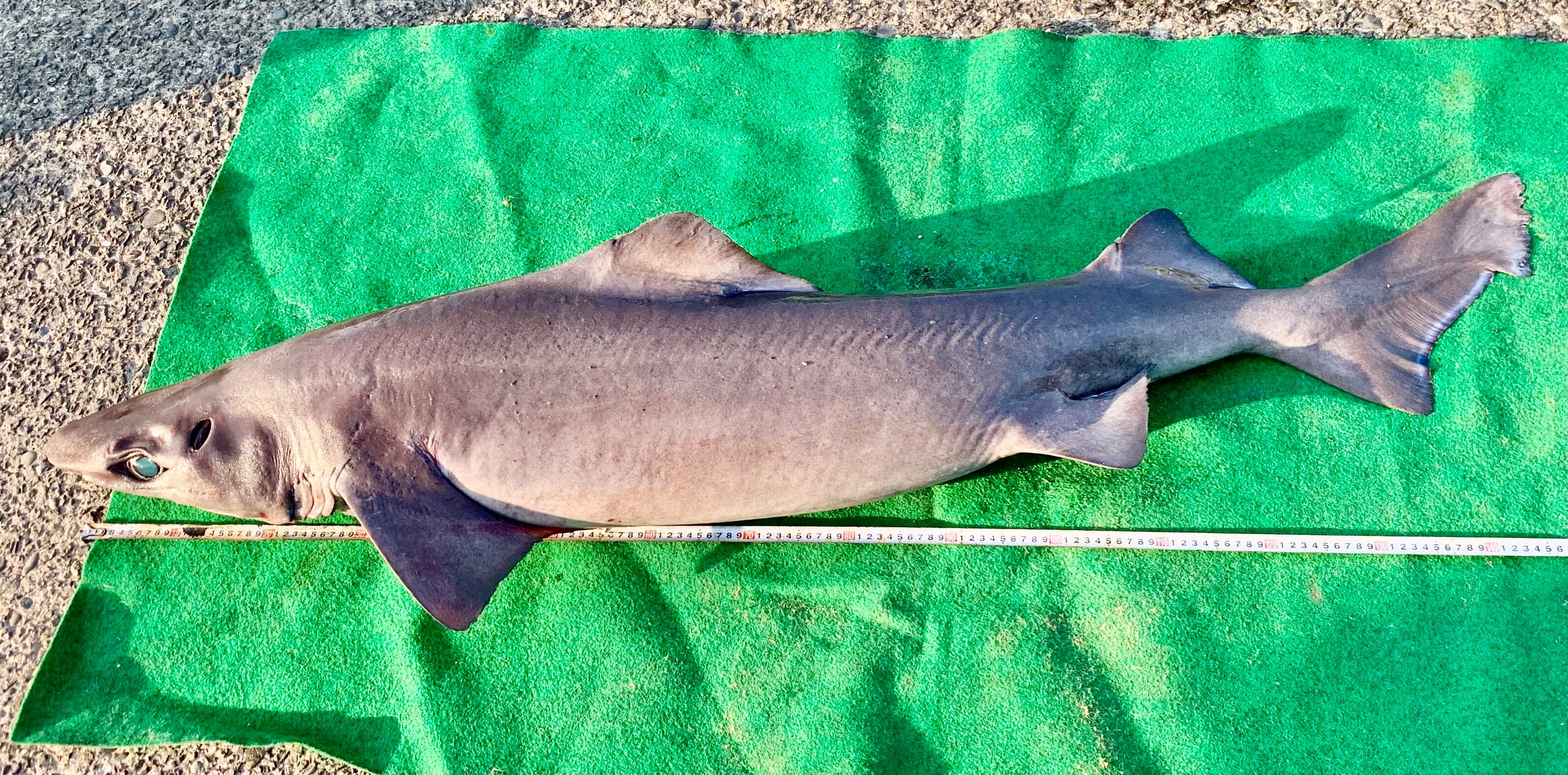 サメは自分たちで釣り上げたサメを使用し、金具部分には釣具の一つ【スナップサルカン】を使用しています。
